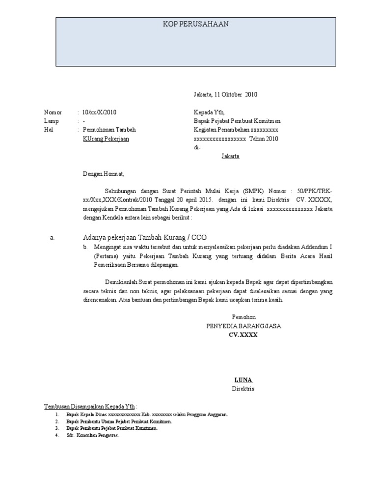 Contoh Surat Addendum Perpanjangan Waktu Pekerjaan Surat P