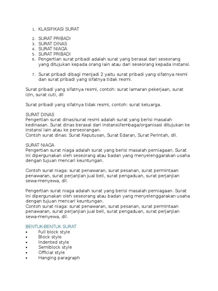 Contoh Bentuk Surat Menggantung Hanging Paragraph Style Surat