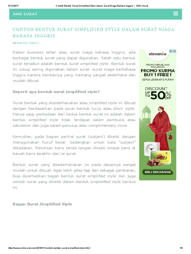 Contoh Bentuk Surat Simplified Style Dalam Surat Niaga Bahasa