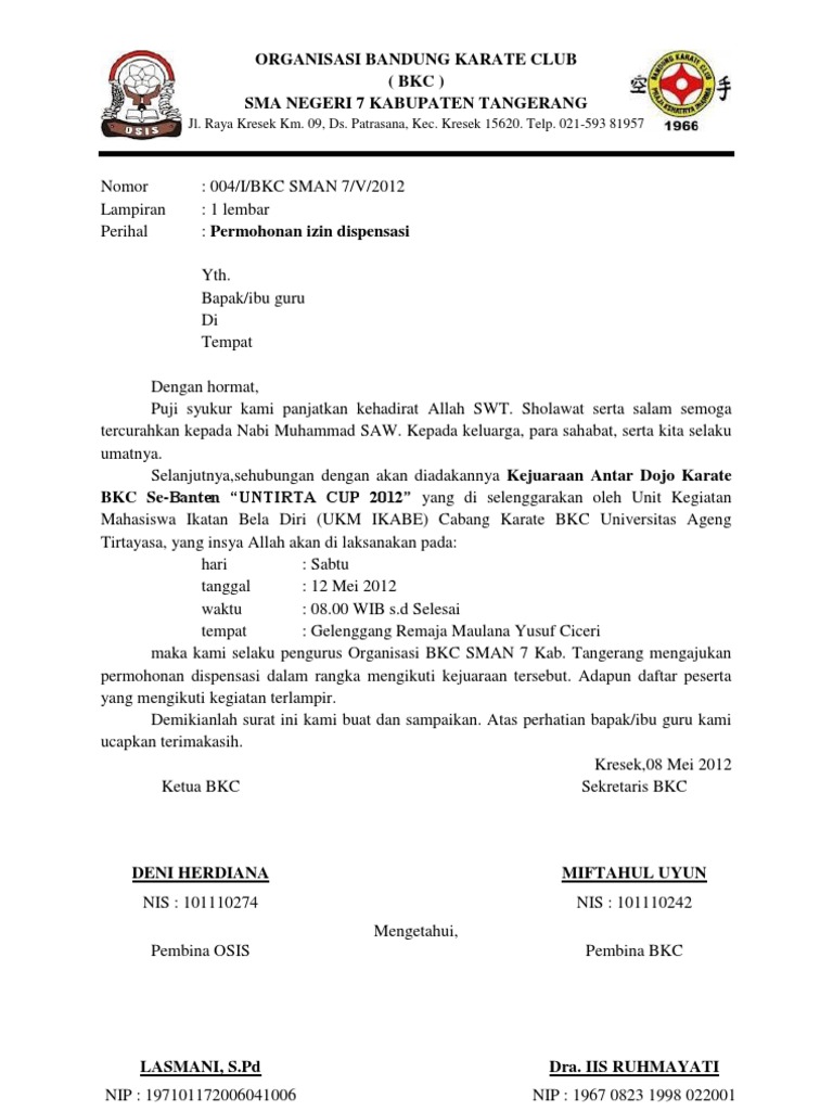 Contoh Surat Dispensasi Pencak Silat Www Gambar Wiki