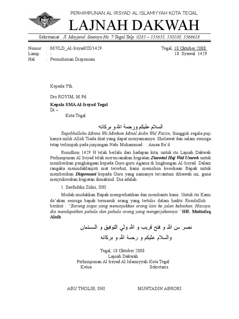 Contoh Surat Dispensasi Contoh Surat Lengkap