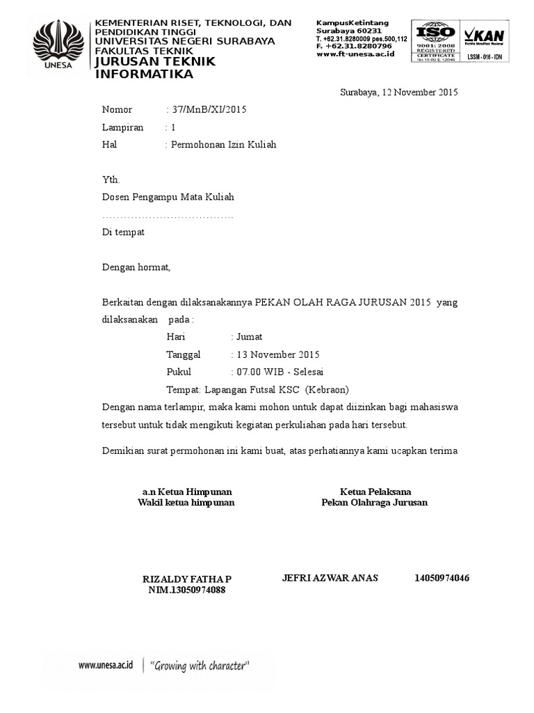 Bem Ftm Upnvyk On Twitter Contoh Surat Dispensasi Https T Co