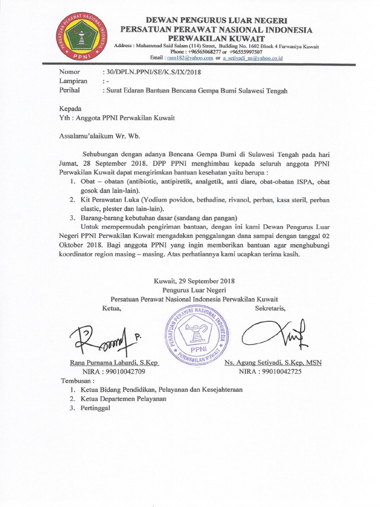 Contoh Surat An Bantuan Bencana Gempa