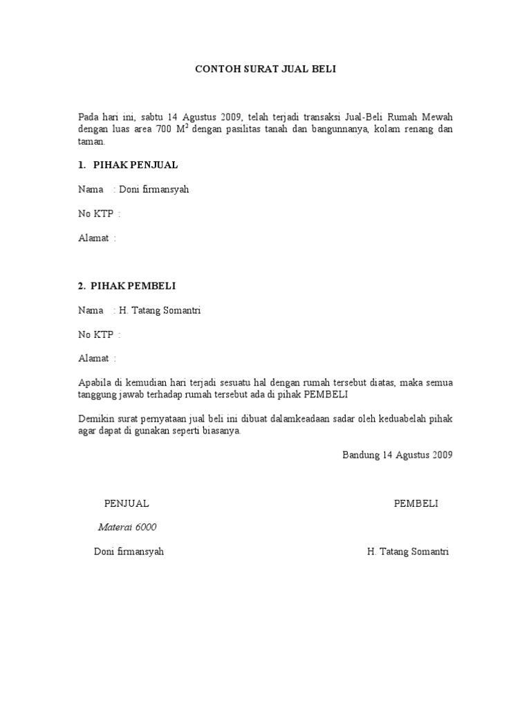 Contoh Surat Jual Beli Rumah Archives Contoh Surat