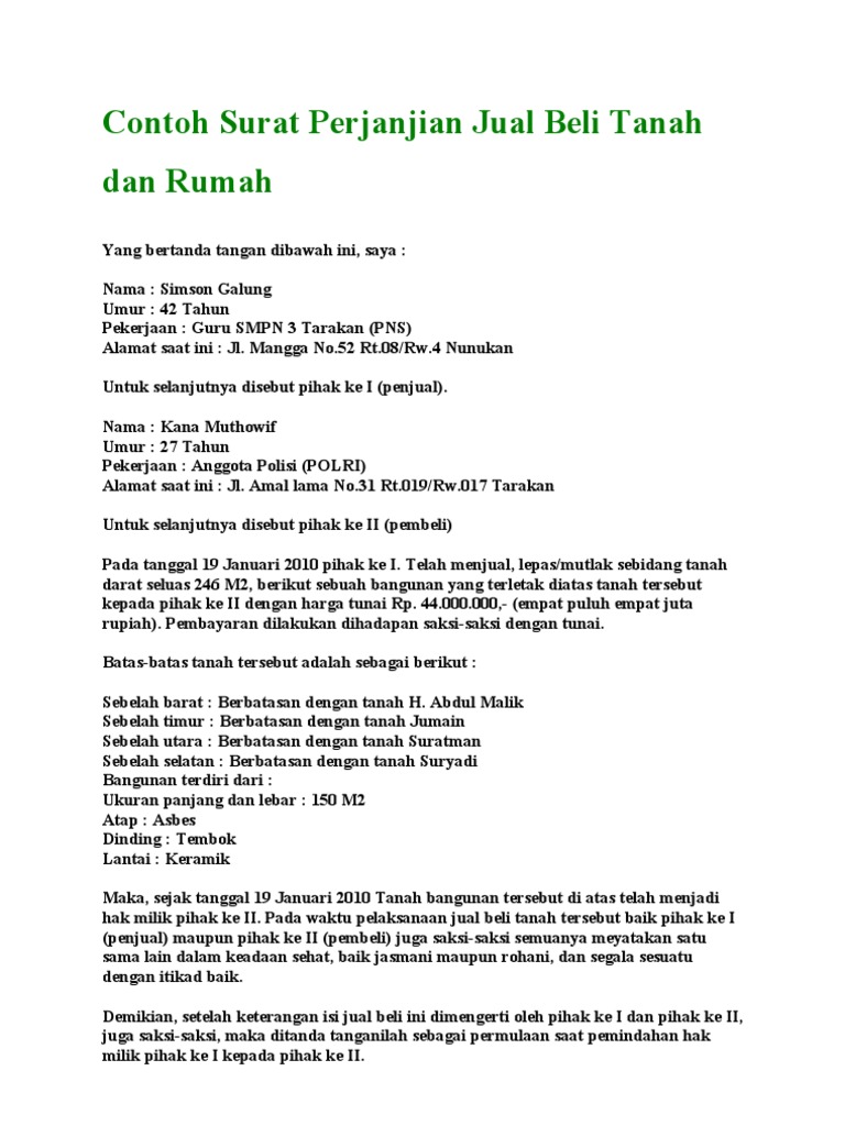 Contoh Surat Perjanjian Jual Beli Tanah Dan Rumah Pdf Document