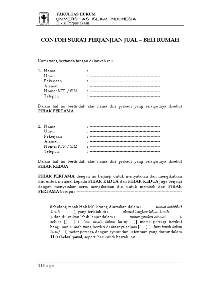 Contoh Surat Perjanjian Pengikat Jual Beli Rumah Fh Uii