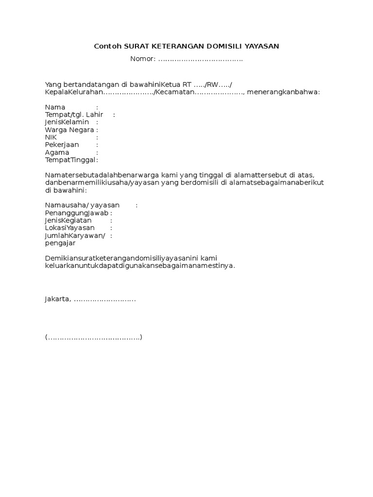 Contoh Surat Keterangan Domisili Yayasan