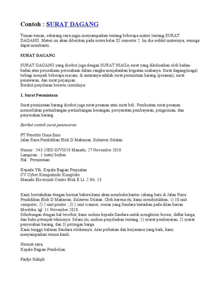Contoh Surat Niaga Dan Surat Kuasa