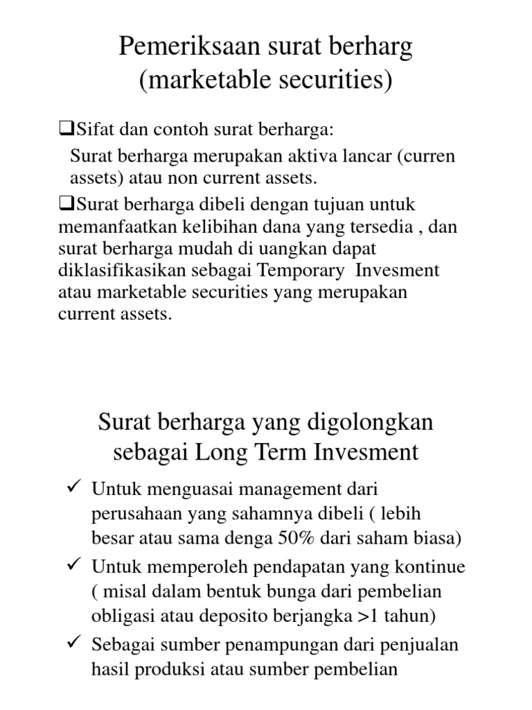 Pemeriksaan Surat Berharga Dan Investasi Ppt Download