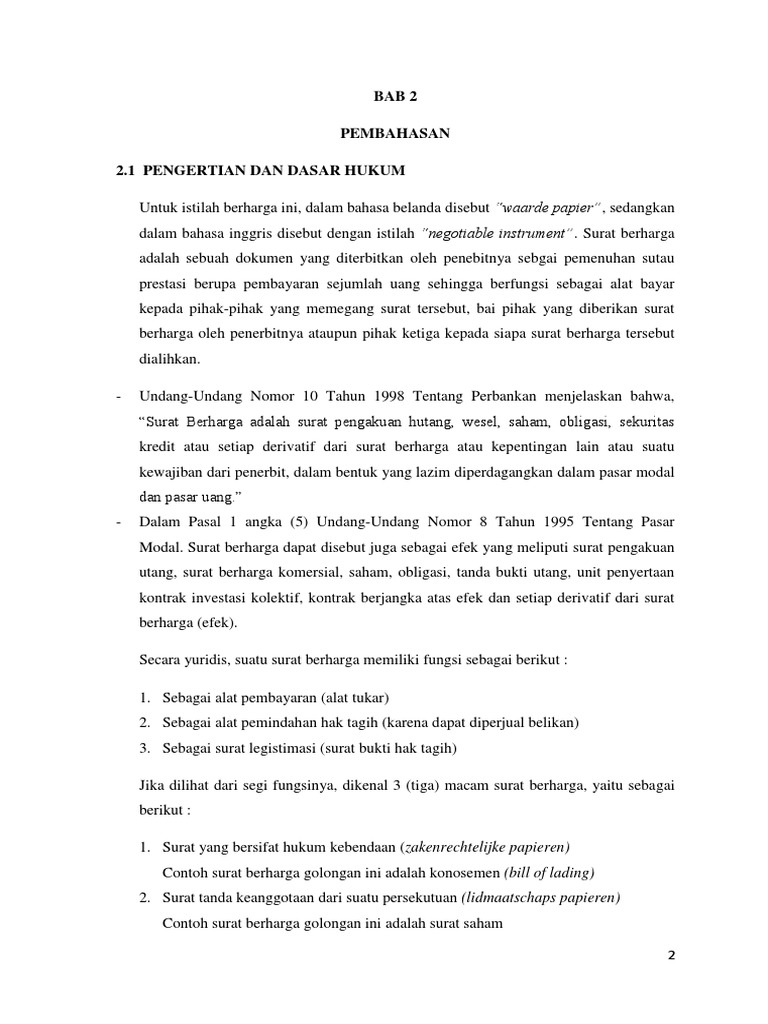9 Bab 2 Pengertian Surat Berharga Tujuan Dan