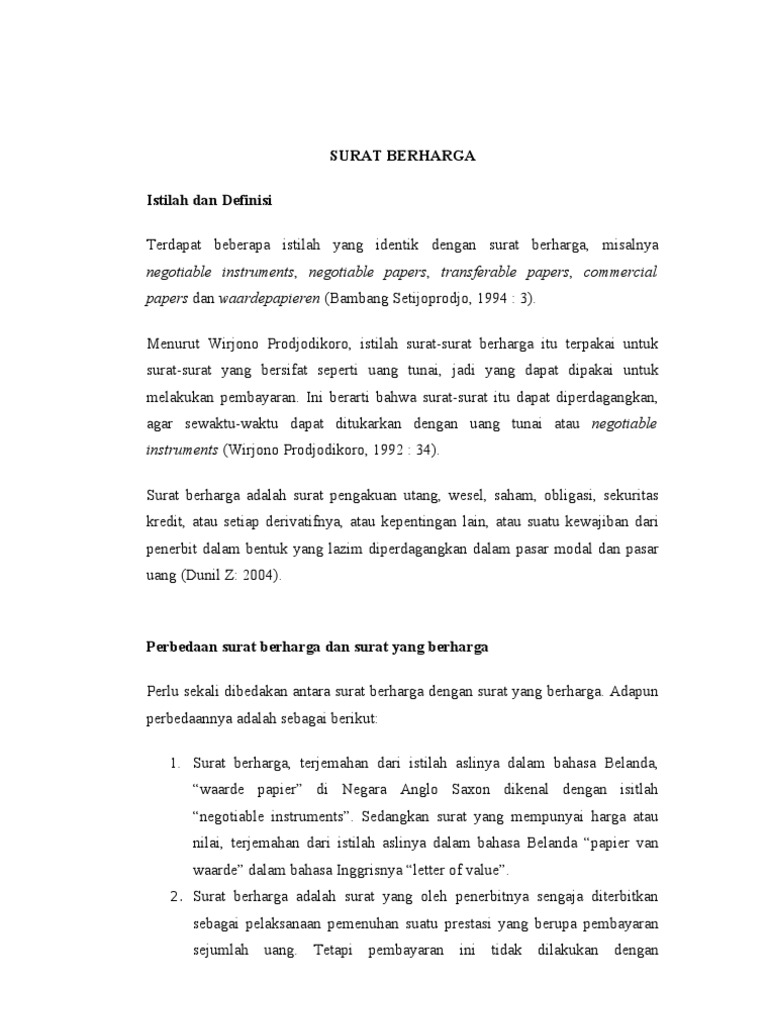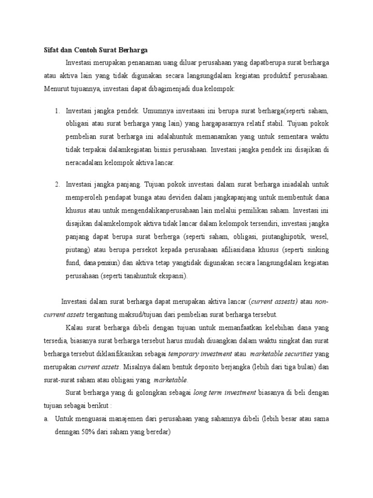 Contoh Surat Berharga Yang Diperjualbelikan Di Indonesia Contoh