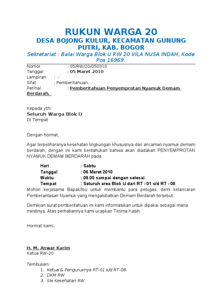 Contoh Surat Pemberitahuan Himbauan Dari Rt Murad Maulana
