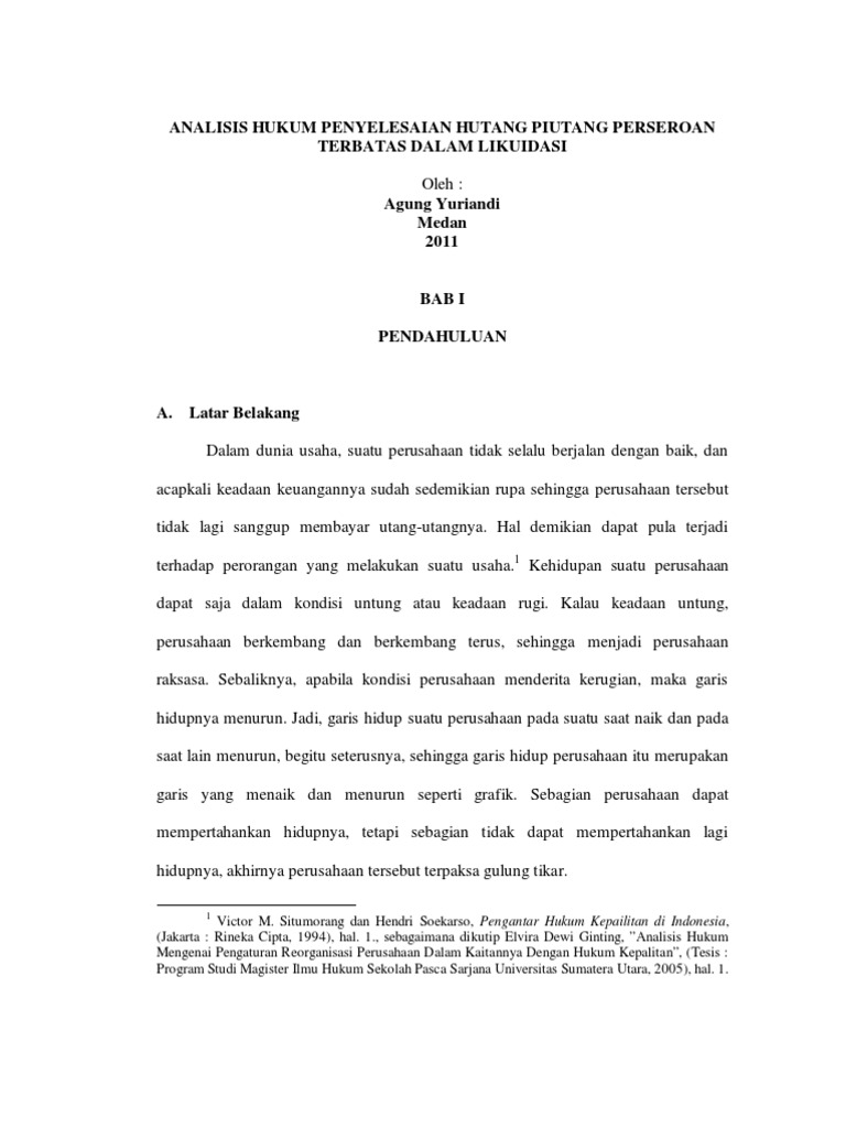 Analisis Hukum Penyelesaian Hutang Piutang Perseroan Terbatas Dalam